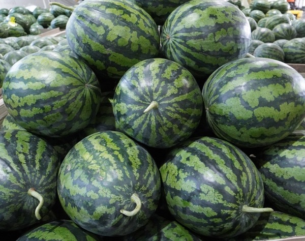 수박은 가운데를 중심으로 원형이나 타원형으로 균형 있게 모양이 잡힌 것을 고릅니다. 모양이 일그러져 있거나 불균형한 것은 성장시기에 영양이 원활하게 공급되지 않은 것으로 맛도 떨어집니다. 수박은 껍질이 윤기가 나고 검은 띠가 선명한 것이 좋습니다.